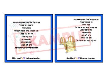A great activitiy to learn and interact with the famous Israeli song "My Eretz Israel". Everyone loves Israeli songs ארץ ישראל שלי!