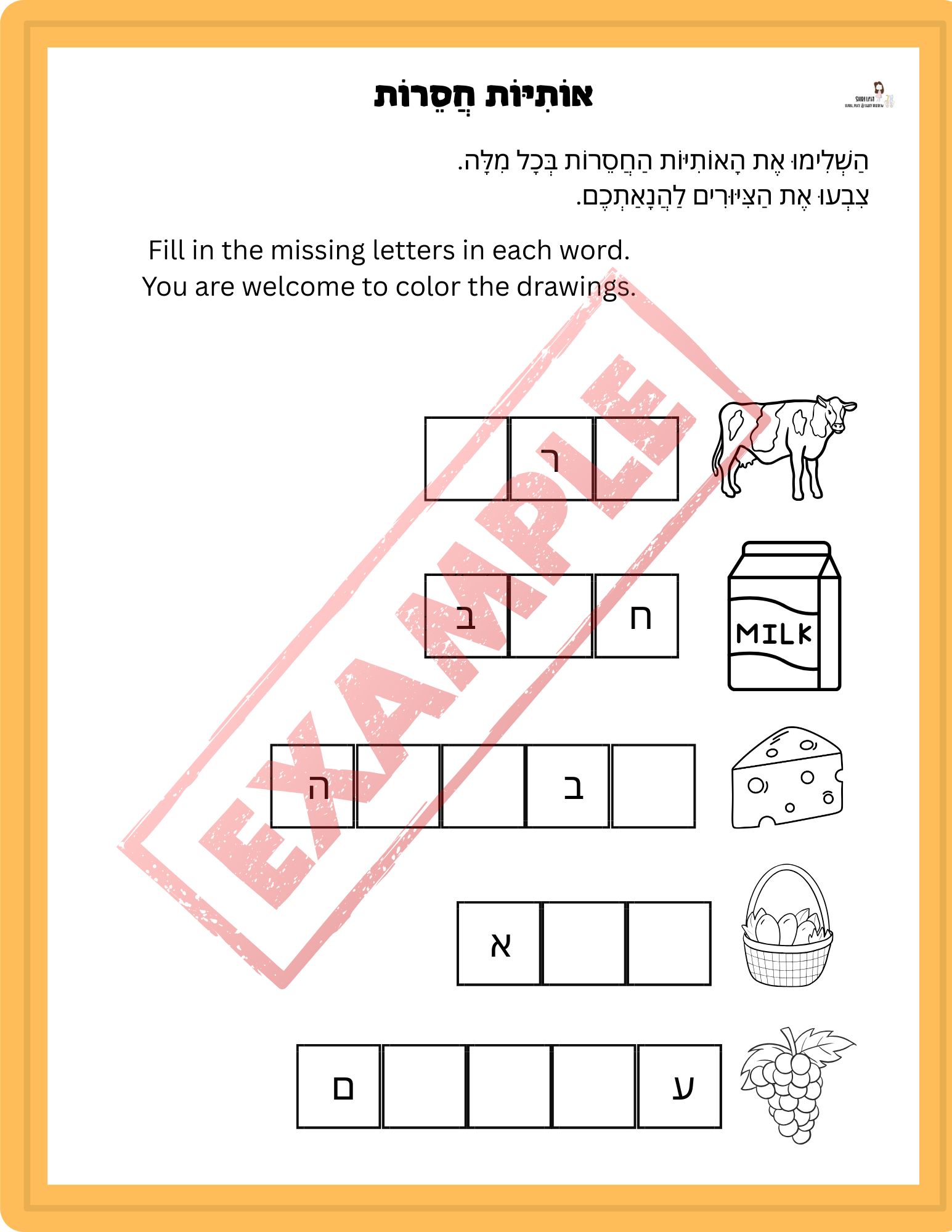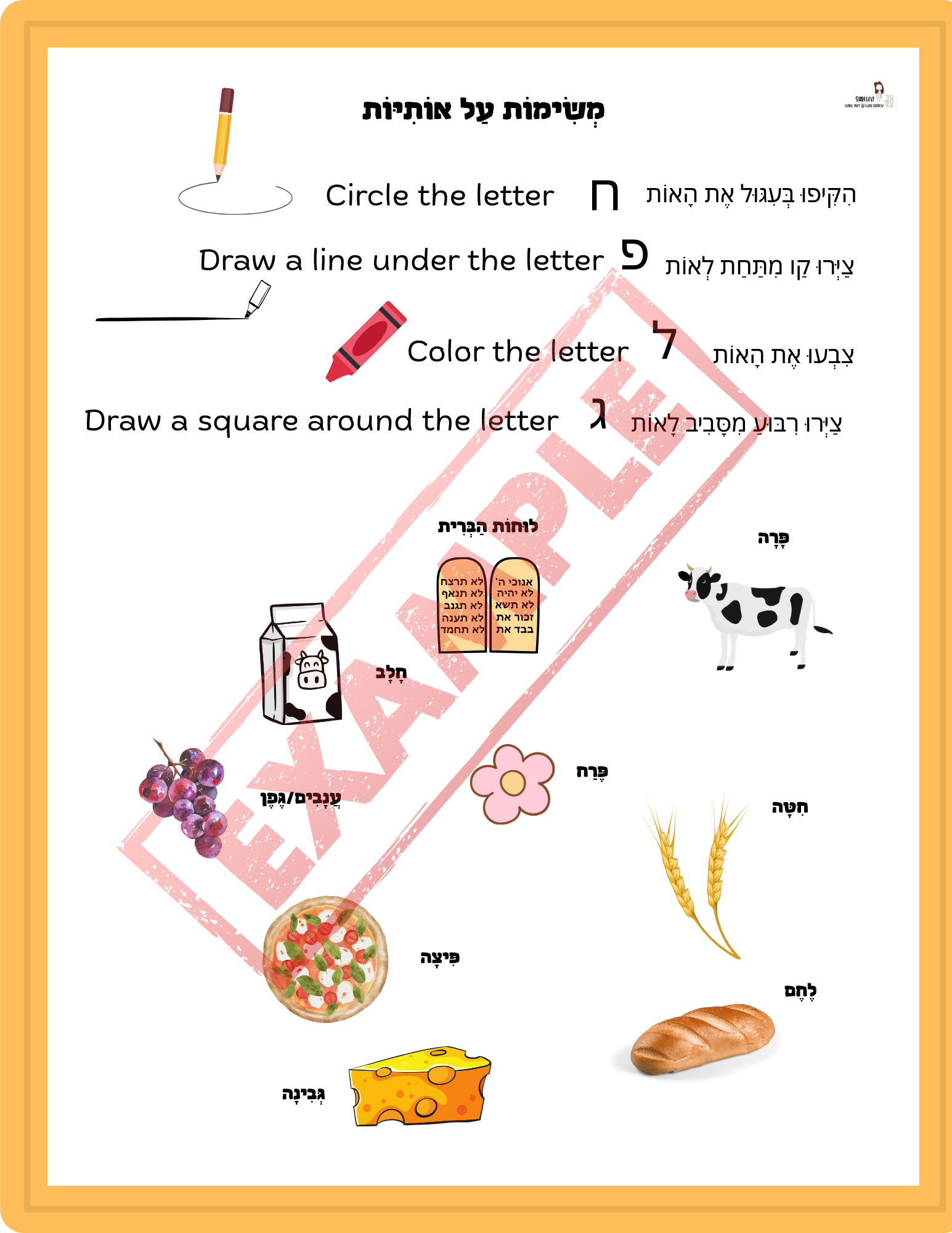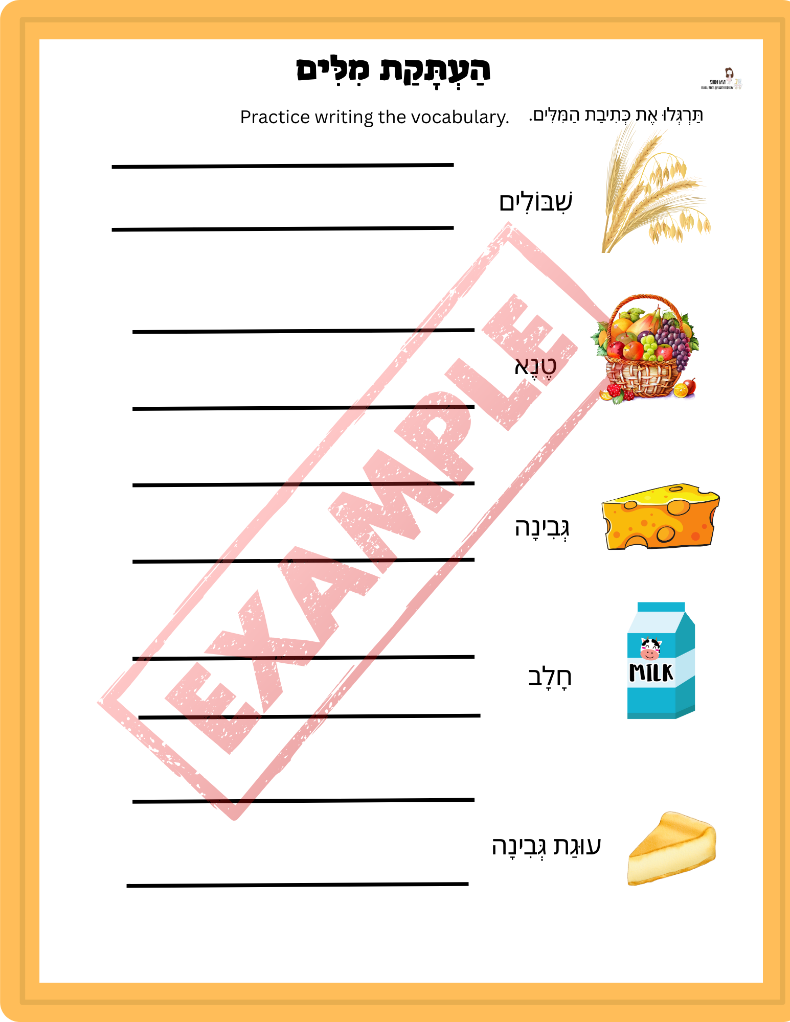 This Shavuot-themed workbook is perfect for children who are in the early stages of learning to read Hebrew. Designed for kids who already know their Hebrew letters and are beginning to build vocabulary, this printable resource offers fun and meaningful ways to strengthen letter recognition and connect to key Shavuot words and symbols.