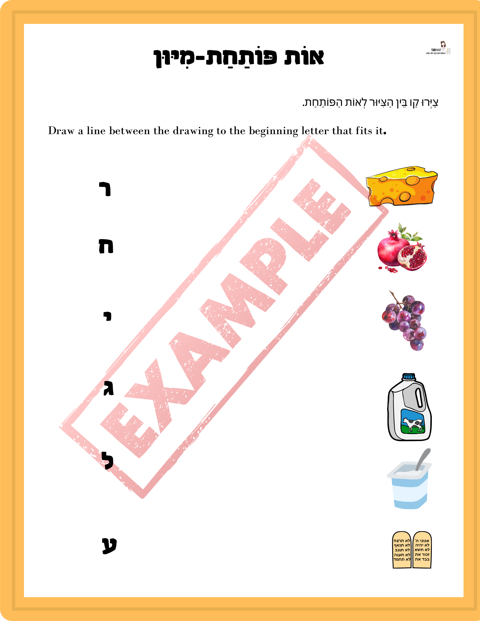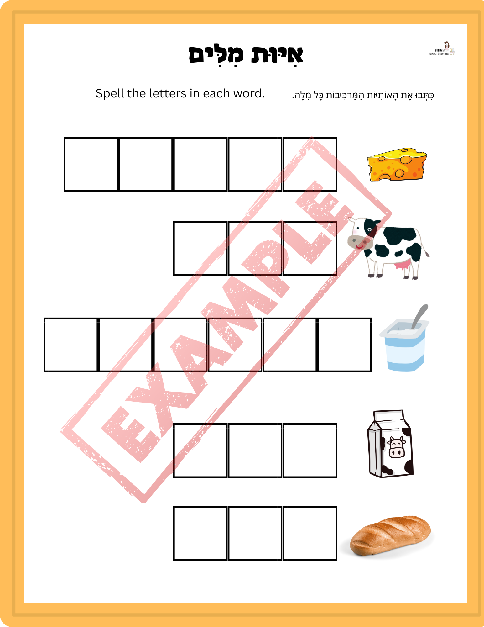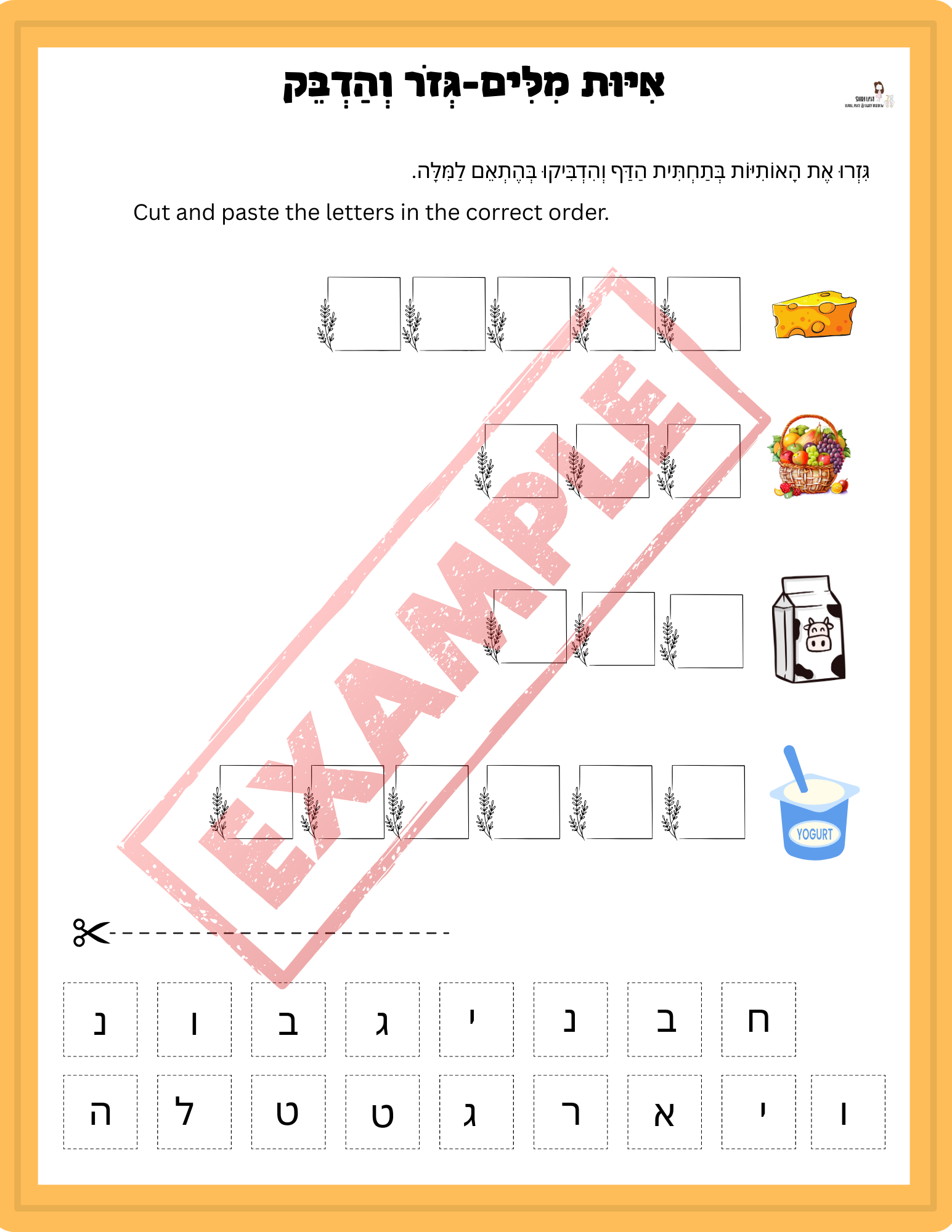This Shavuot-themed workbook is perfect for children who are in the early stages of learning to read Hebrew. Designed for kids who already know their Hebrew letters and are beginning to build vocabulary, this printable resource offers fun and meaningful ways to strengthen letter recognition and connect to key Shavuot words and symbols.